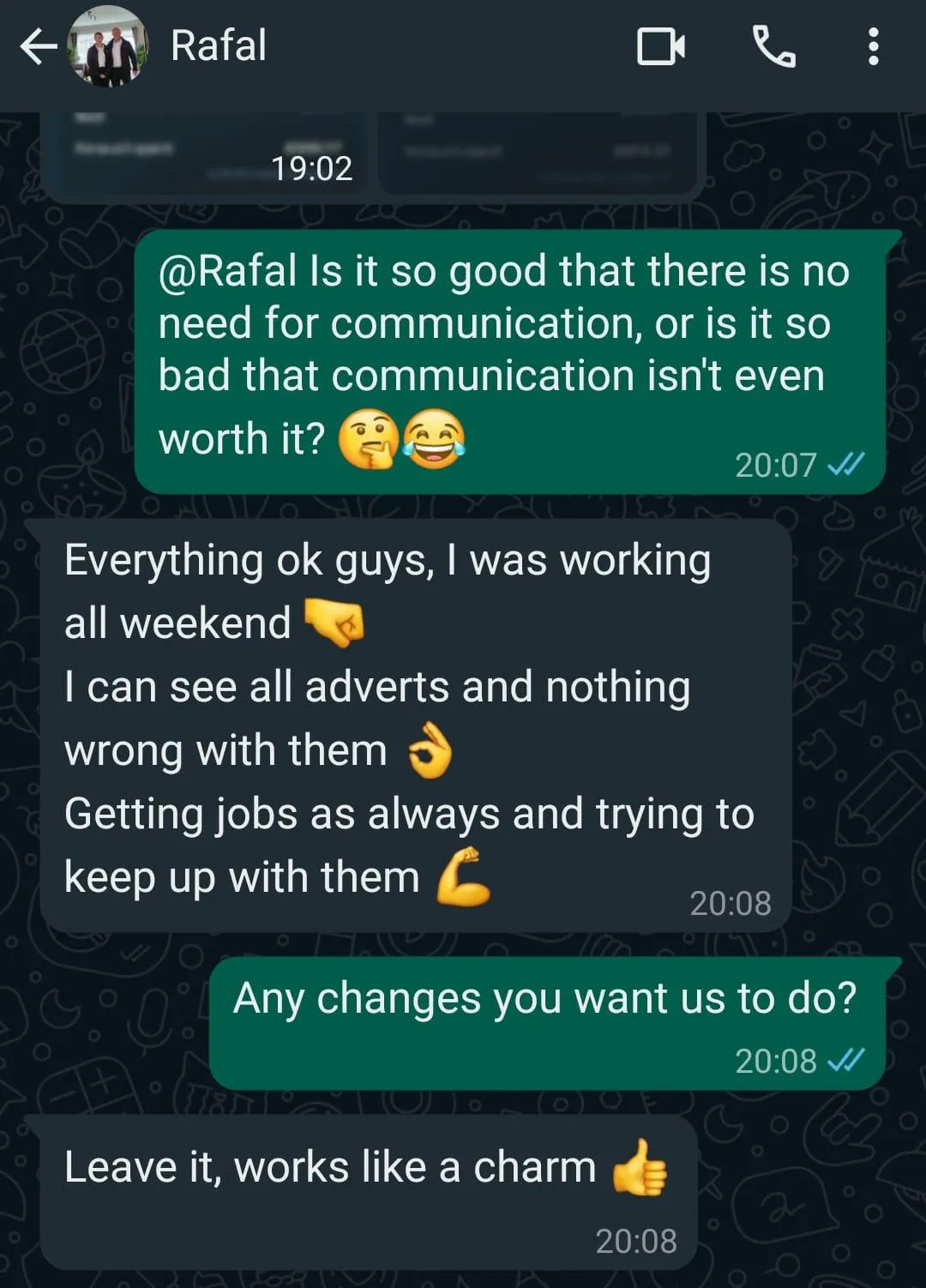 since that me and Nick have been working together, they take into account every concern I have and improve it. at the start I was concerned because I have never heard of them, but now I know, as they are mot that big, they are very attentive towards our partnership.